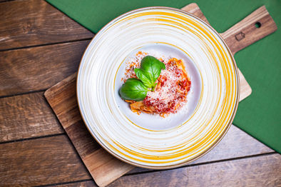 Těstoviny s rajčatovou omáčkou a parmezánem 125,-